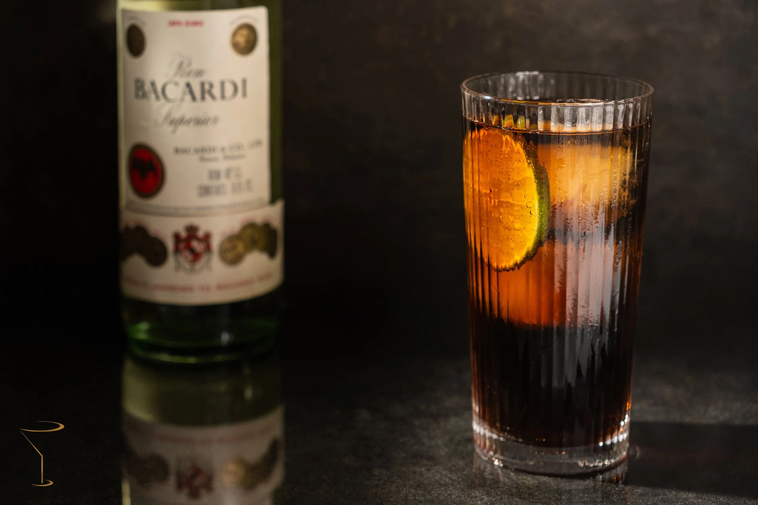 Vintage Cuba Libre Cocktail 1970er Bacardi Rum, Coca-Cola, Limette