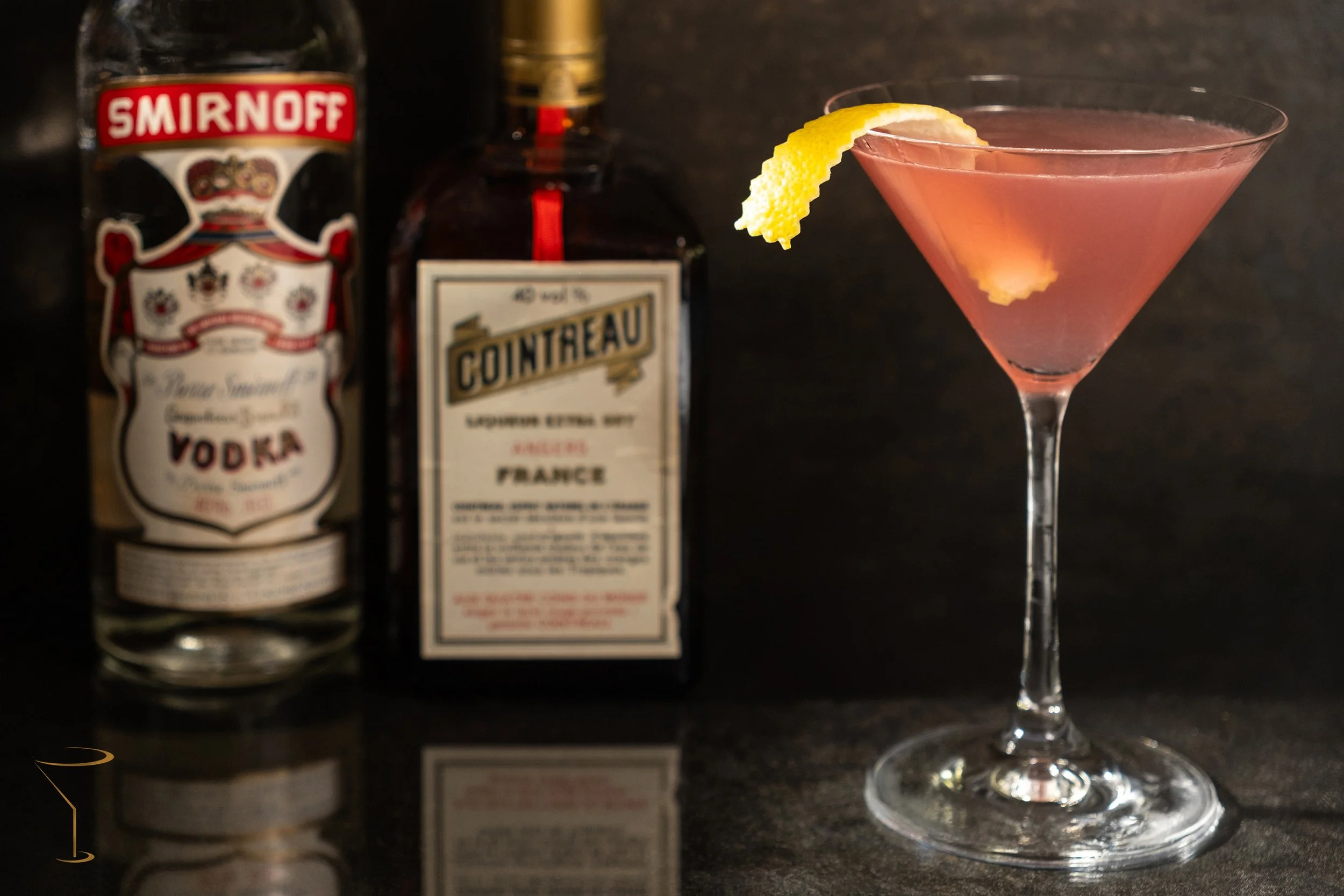 Vintage Cosmopolitan Cocktail 1970er Smirnoff Vodka, 1970er Cointreau, Limettensaft, Cranberrysaft