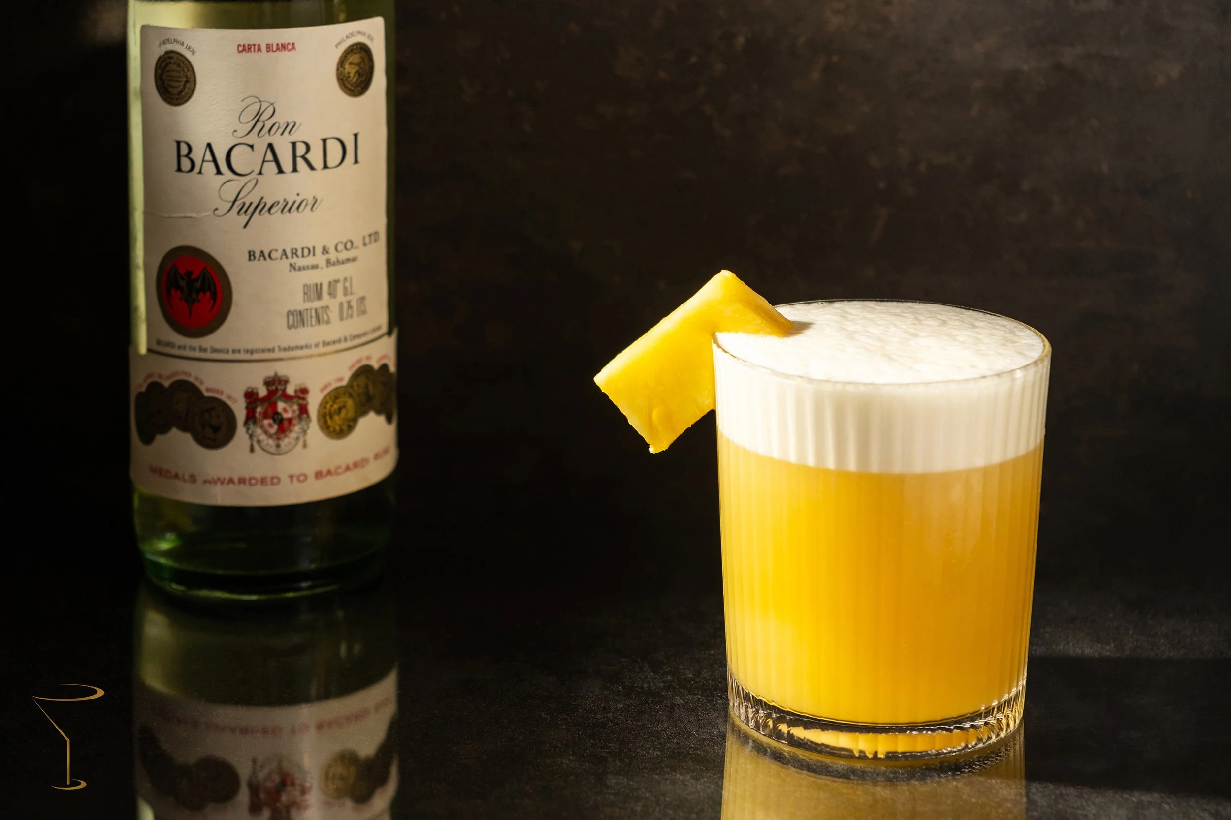 Vintage Piña Colada Cocktail 1970er Bacardi Rum, Ananassaft, Kokos, Limette