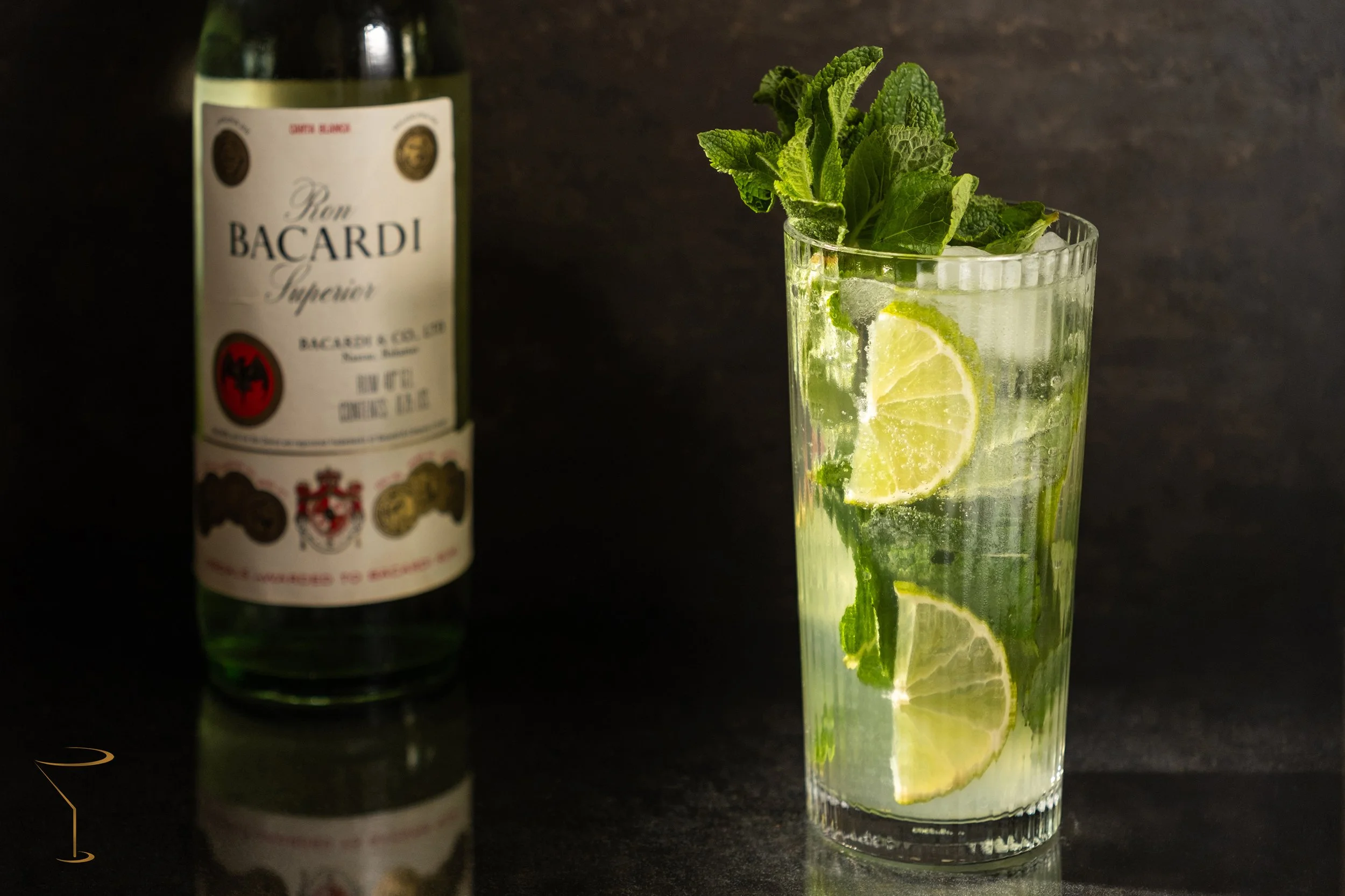 Vintage Mojito Cocktail 1970er Bacardi Rum, Limettensaft, Minze, Zucker, Soda