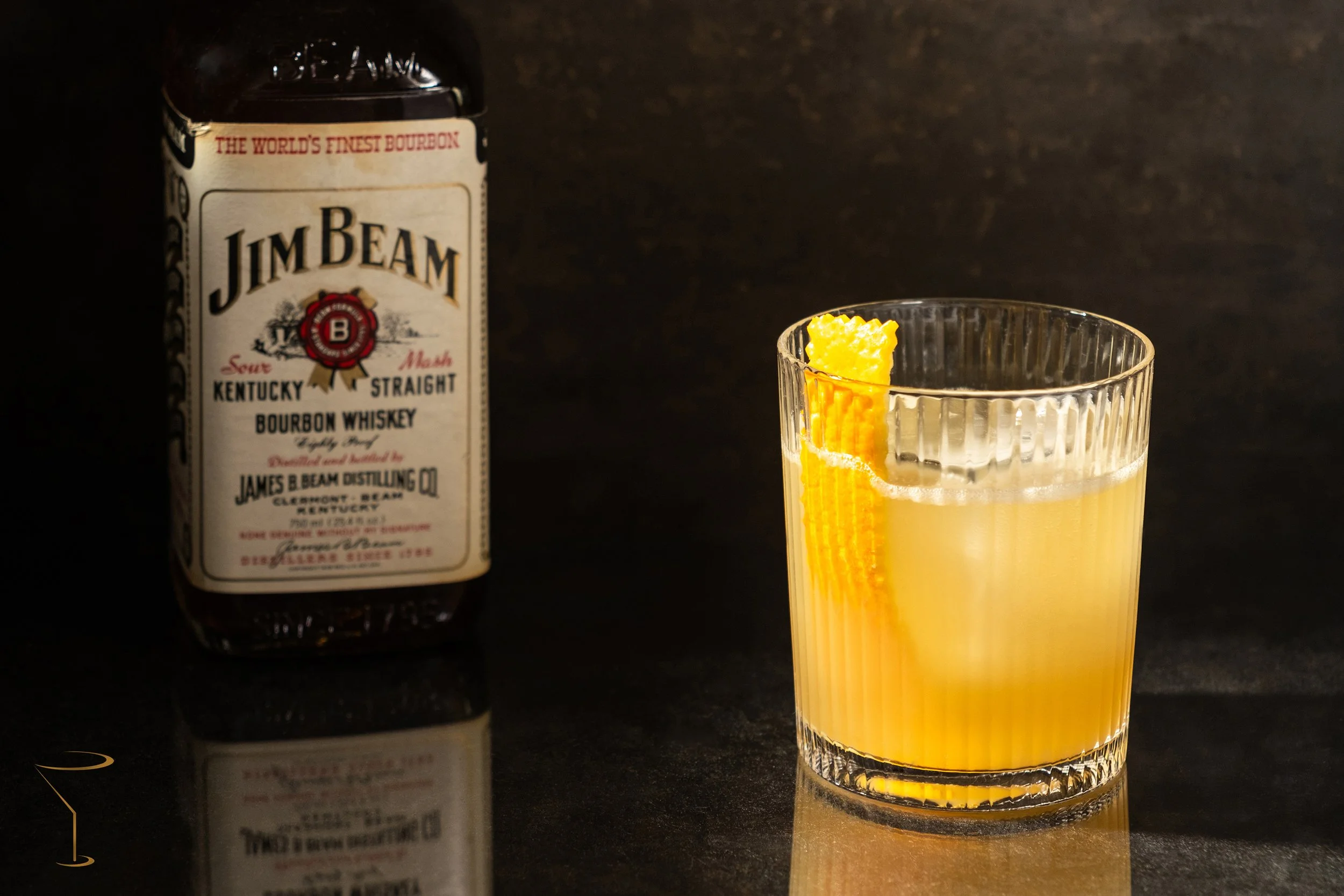 Vintage Whiskey Sour Cocktail 1970er Jim Beam Bourbon Whiskey, Zitronensaft, Zuckersirup
